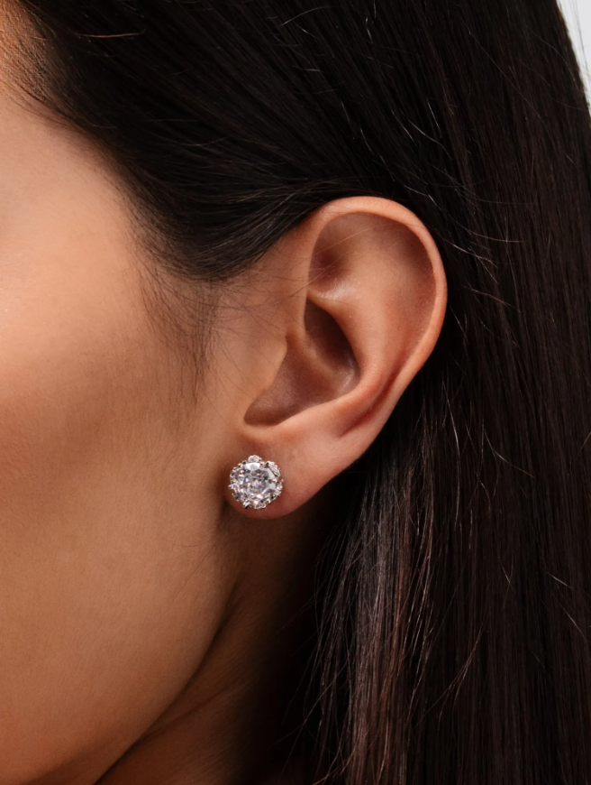 Brinco Solitário Redondo com Zircônia – Folheado em Ródio Branco